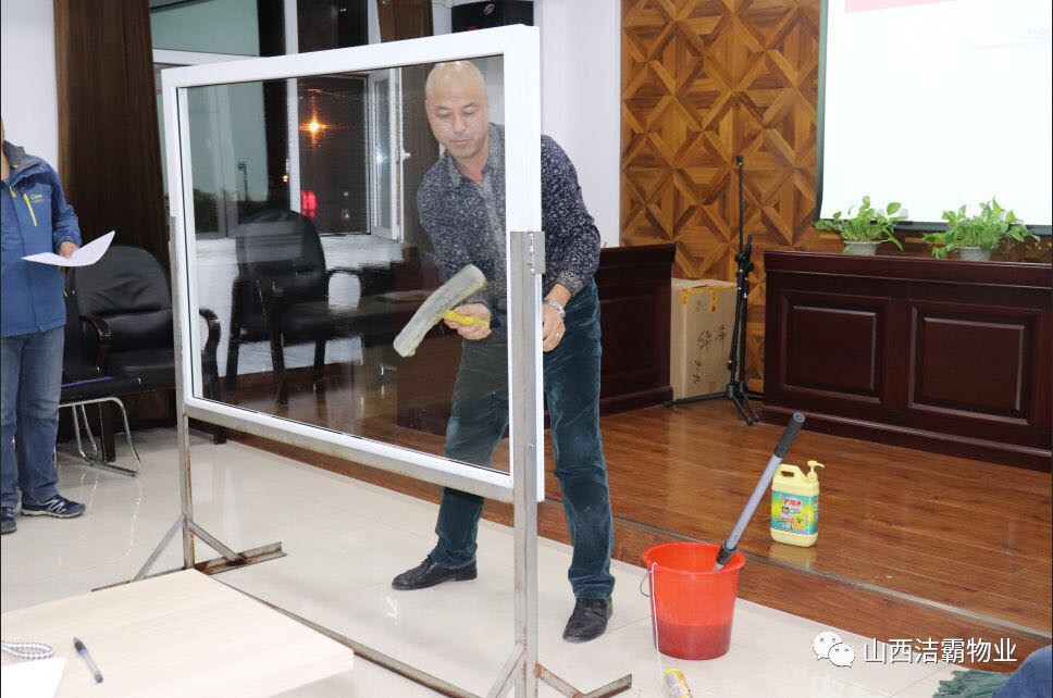 為提高公司管理人員基礎(chǔ)技能,潔霸公司利用周四內(nèi)部員工培訓(xùn)的時(shí)間組織了一次系統(tǒng)的內(nèi)部管理人員檫玻璃培訓(xùn),隨后并進(jìn)行了以組為單位的檫玻璃競(jìng)賽。