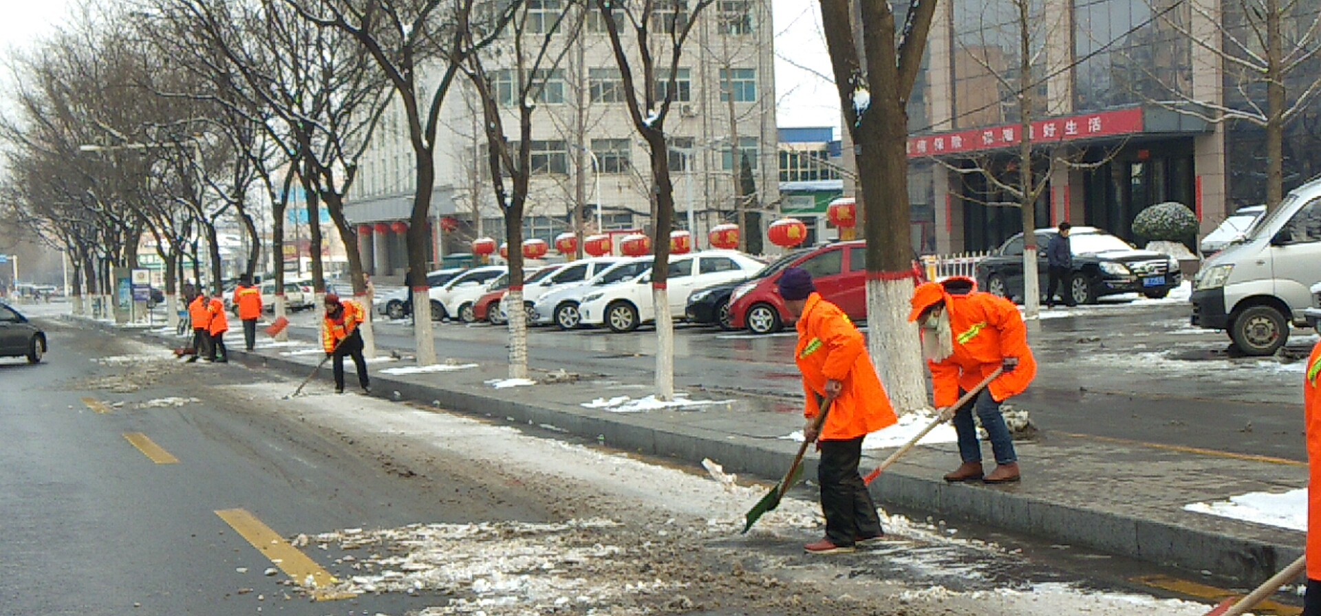 新年的第一場(chǎng)大雪,到處銀裝素裹,扮美了整個(gè)晉城,但大雪帶來(lái)美景的同時(shí),也給大家的出行帶來(lái)了不便。為保障大雪期間出行安全,潔霸公司各保潔點(diǎn)的負(fù)責(zé)人積極組織員工進(jìn)行主干道積雪清掃,在除雪過(guò)程中,雖然天氣寒冷,但大家除雪的熱情卻不減,大家有的撒融雪劑,有的 清掃積雪,有的用鏟子除冰,奏響鏟雪破冰進(jìn)行曲。