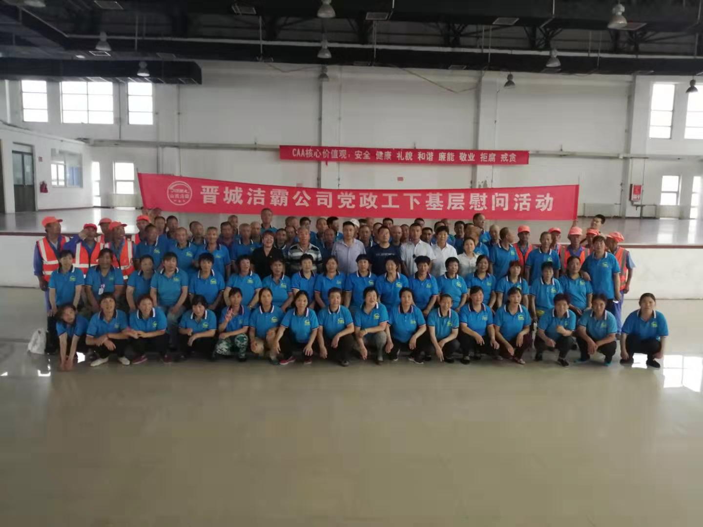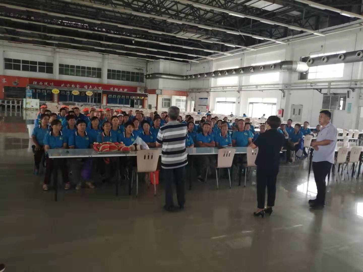 在富士康餐廳二樓,利用工作人員切西瓜的間隙,公司總經(jīng)理程晉軍作了簡短的講話。他說,前一段時間,公司召開了“安康杯”勞動競賽動員大會,大家要提高安全意識,始終把安全工作放在心上。他囑托大家在夏季工作中一定要注意防暑,感謝大家在酷暑下依舊兢兢業(yè)業(yè)奮斗在各自的工作崗位上。工會主席崔偉也作了簡要發(fā)言,他說,今年是潔霸公司成立二十周年,希望大家在工作中繼續(xù)發(fā)揚潔霸精神,積極樹立潔霸形象,為公司爭光。