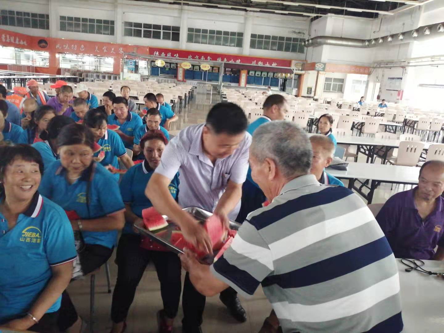 緊接著,程總親自為大家遞上了西瓜。一份清涼,一份關(guān)懷,一份愛心。一塊塊西瓜不僅送去了公司的關(guān)懷,更是極大鼓舞了一線員工的士氣。大家吃著西瓜,爽在嘴里,甜在心里,臉上露出了開心的笑容。