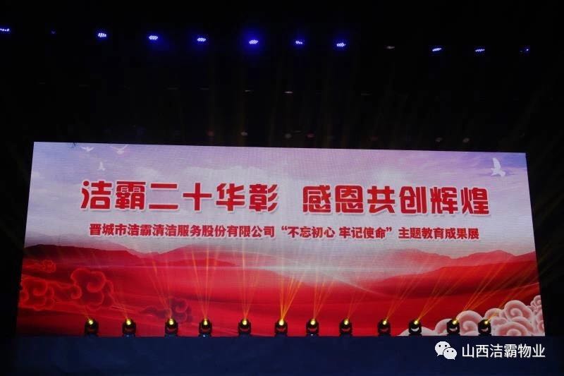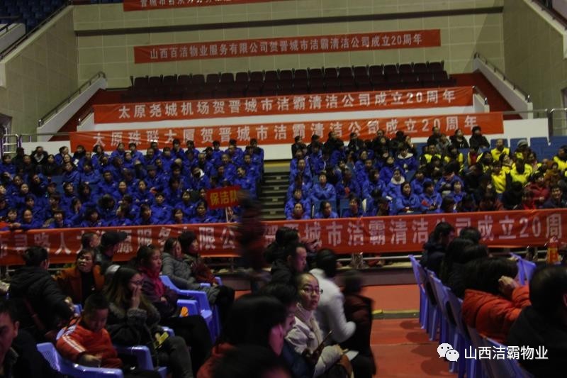 11月28日晚,晉城市潔霸清潔服務股份有限公司二十周年慶典晚會在晉城市文體宮隆重舉行。潔霸公司員工喜氣洋洋、歡聚一堂,共同觀看了慶典演出,共賀潔霸公司成立二十周年!
