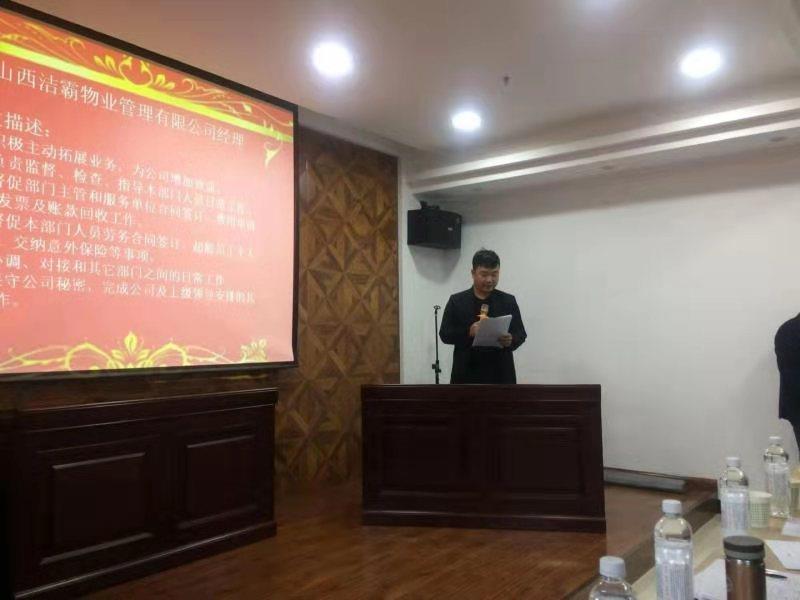 12月20日下午,晉城市潔霸清潔服務股份有限公司開展中層管理人員競聘演講活動,公開競聘選拔物業(yè)管理公司經(jīng)理,運營中心經(jīng)理,清潔用品超市店長3個職位的中層管理人員。公司領導班子成員和部分管理人員出席活動。
