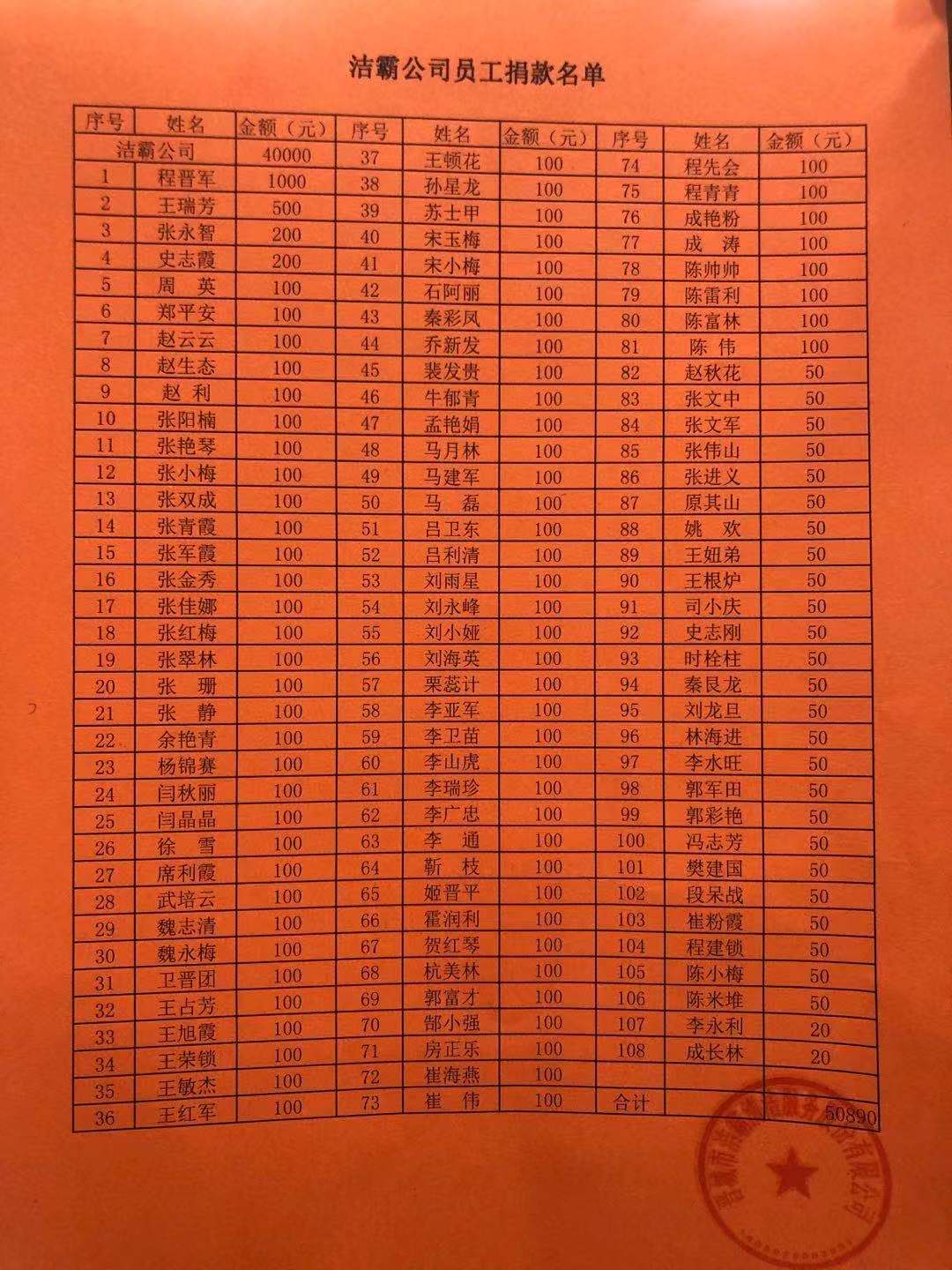 捐款倡議書(shū)在“潔霸一家人”群發(fā)布后,大家踴躍參與。公司班子成員率先垂范,帶頭捐款,全體干部員工勠力同心,慷慨解囊,凸顯了潔霸人的責(zé)任與擔(dān)當(dāng)。
