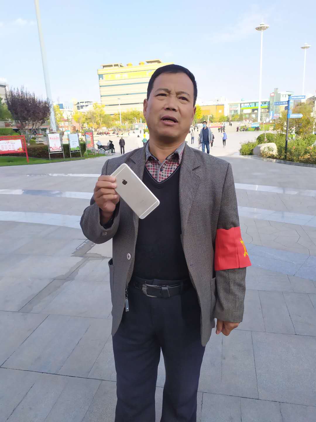 2020年10月31日下午2時30分左右,潔霸公司保安人員王紅廷師傅在人民廣場西門執(zhí)勤過程中,發(fā)現臺階上被人丟失的一部銀灰色的蘋果手機,失主已經離開,為防止手機被無關人員撿走,他趕忙將手機交至人民廣場辦公室進行登記備案,并且想到失主一定焦急萬分,隨后到西門等待失主回來找手機,一個小時以后,一個面色匆匆的小姑娘來到了西門說尋找丟失的手機,王紅廷師傅把她領到廣場辦公室,讓她對自己丟失的手機進行一個簡單直觀的描述后,當場和廣場辦公室人員一同確認這個小姑娘就是手機的主人,面對丟而復得的手機,小姑娘激動地說,回來找只是僥幸心理,一直想的是手機應該早被人拿走了,沒想到真的就找到了,無數次的真誠地和王紅廷師傅說著謝謝!王紅廷師傅用簡樸的語言說,換了誰都一樣,大家都會這么做!