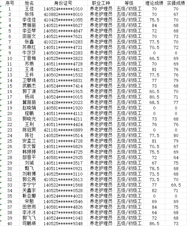 2024年7月14日第21批養(yǎng)老護(hù)理員初級認(rèn)定人員成績公示